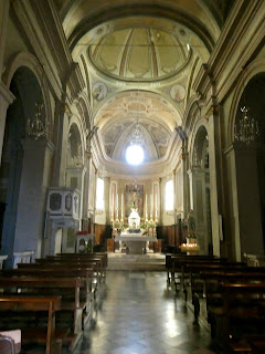 Sometimes, when the server comes to my table, and I am still trying to figure out what the Italian words mean, I just point to something, and wonder what the hell I just ordered. It paid off in spades tonight. This was Tris de Testaroli Lunagianesi serveti con olio pesto e sugo di funghi porcini or Lunagiani's pasta with oil, pesto (local sauce made with basil, pinenuts, garlic, olive oil, and parmesan) and porcini mushroom sauce. I wasn't expecting pasta to look like this. The only way I can describe the pasta was like a less spongy buckwheat pancake. It was amazing. Even though the pesto looked like the after-effect of the cat eating grass, it was scrumptious. I could order this seven nights in a row and never get tired of it. And this was just the first course. As usual, I skipped the main course.